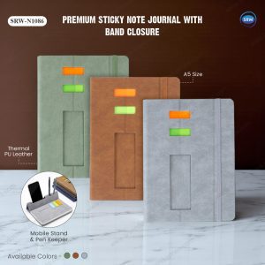 Impress clients and empower your team with SRW’s premium corporate notebooks. Crafted with luxurious materials like leatherette covers and smooth, fountain pen-friendly paper, these notebooks exude professionalism and style. Boost productivity with functional features like organizational pockets, side locks and lay-flat binding. Personalize notebooks with your company logo for a memorable and impactful corporate gift.